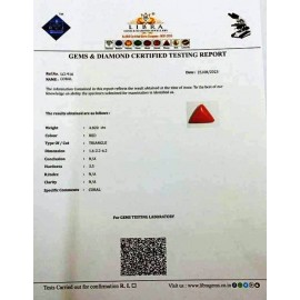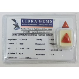 REPORT.NO.-LCI 818CLARITY.-N/ACOLOUR.-REDSHAPE/CUT.-TRIANGLEWT.-3.46 CTSDIMENSION.-1-6.10-5.4-7.R.INDEX.-N/AHARDNESS.35COMMENT.-CORAL..