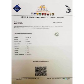 REPORT.NO.LDM 60CLARITY.SI-1COLOUR.JSHAPE/CUT.ROUNDWT.0.18 CTSDIMENSION.3.5-3.5-2.2R.INDEX.2.42HARDNESS.10.0COMMENT.DIAMOND ..
