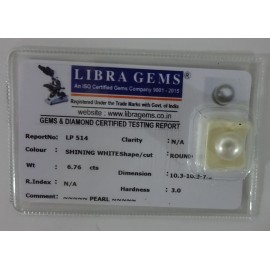 REPORT NO . LP 514CLARITY . N/ACOLOUR . SHINING WHITESHAPE / CUT . ROUNDWT . 6.76 CTSDIMENSION . 10-3.10-3.7-5.R . INDEX . N/AHARDNESS . 3.0COMMENT . PEARL..