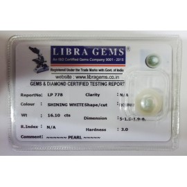 REPORT NO . LP 778CLARITY . N/ACOLOUR . SHINING WHITESHAPE / CUT . ROUNDWT . 16.10 CTSDIMENSION . 5-1.5-1.9-6.R . INDEX . N/AHARDNESS . 3.0COMMENT . PEARL..
