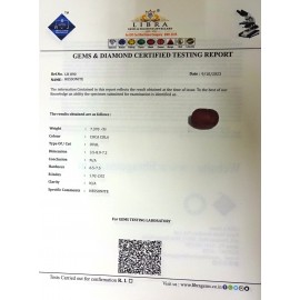 REPORT NO . LH 47CLARITY . N/ACOLOUR . COCA COLASHAPE / CUT . OVALWT . 6.24 CTSDIMENSION . 3-1.9-7.5-6.R . INDEX . 1.92-2.02HARDNESS . 6.5-7.5COMMENT . HESSONITE..