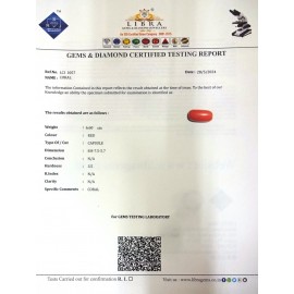 REPORT NO . LCI 203CLARITY . N/ACOLOUR . REDSHAPE / CUT . CAPSULEWT . 3.55 CTSDIMENSION . 4-4.5-8.5-1.R . INDEX . N/AHARDNESS . 3.5COMMENT . CORAL..