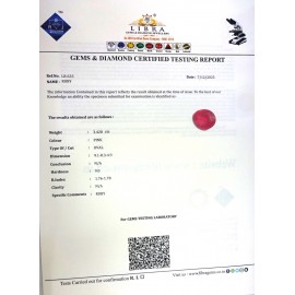 REPORT.NO.-LR 282CLARITY.-N/ACOLOUR.-PINKSHAPE/CUT.-OVALWT.-5.94 CTSDIMENSION.-9.9-9.2-6.7R.INDEX.-1.76-1.76HARDNESS.-9.0COMMENT.-RUBY..