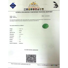 REPORT NO . LEJ 30CLARITY . N/ACOLOUR . GREENSHAPE / CUT . OVALWT . 8.34 CTSDIMENSION . 3-6.1-3.7-2.R . INDEX . 1.57HARDNESS . 7.5COMMENT . EMERALD ( J )..