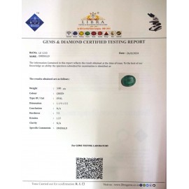 REPORT.NO.-LE 246CLARITY.-N/ACOLOUR.-GREENSHAPE/CUT.-OVALWT.-5.57 CTSDIMENSION.-3-2.10-2.6-1.R.INDEX.-1.57HARDNESS.-7.5COMMENT.-EMERALD..