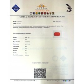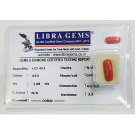 REPORT.NO.-LCI 453CLARITY.-N/ACOLOUR.-REDSHAPE/CUT.-CAPSULEWT.-3.08 CTSDIMENSION.-4.1-5.3-4.7R.INDEX.-N/AHARDNESS.-3.5COMMENT.-CORAL..