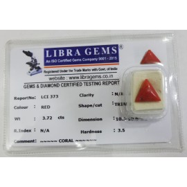 REPORT NO . LCI 373CLARITY . N/ACOLOUR . REDSHAPE / CUT . TRIANGLEWT . 3.72 CTSDIMENSION . 10-5.10-8.5-2.R . INDEX . N/AHARDNESS . 3.5COMMENT . CORAL..