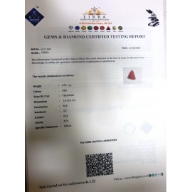 REPORT NO . LCI 81CLARITY . N/ACOLOUR . REDSHAPE / CUT . TRIANGLEWT . 3.21 CTSDIMENSION . 10-2.9-9.5-1.R . INDEX . N/AHARDNESS . 3.5COMMENT . CORAL..