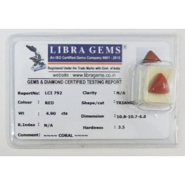 REPORT.NO.-LCI 792CLARITY.-N/ACOLOUR.-REDSHAPE/CUT.-TRIANGLEWT.-4.90 CTSDIMENSION.-10-8.10-7.6-8.R.INDEX.-N/AHARDNESS.35COMMENT.-CORAL..