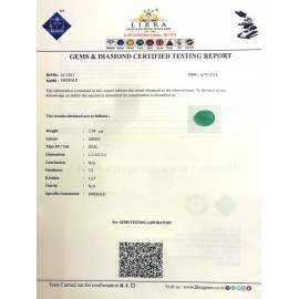 DATE: 18-3-2025REF.NO: LE 1678NAME: EMERALDWEIGHT: 4.36 CTSCOLOUR: GREENTYPE OF/CUT: OVALDIMENSION: 4.1-9.1-5.1/CONCLUSION: N/AHARDNESS: 7.5R.INDEX: 1.57CLARITY: N/ASPECIFIC COMMENTS: EMERALD..