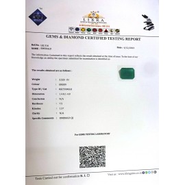 REPORT NO . LE 95CLARITY . N/ACOLOUR . GREENSHAPE / CUT . OVALWT . 4.75 CTSDIMENSION . 3-7.9-8.4-5.R . INDEX . 1.57HARDNESS . 7.5COMMENT . EMERALD..
