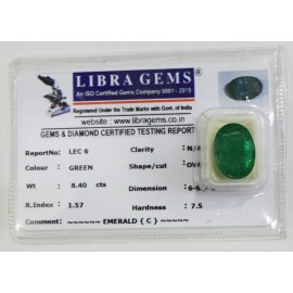 REPORT.NO.LEC 6CLARITY.N/ACOLOUR.GREENSHAPE/CUT.OVALWT.8.40 CTSDIMENSION.6.6-2.1-7.2R.INDEX.1.57HARDNESS.7.5COMMENT.EMERALD {C}..