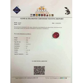 REPORT.NO.LR 549CLARITY.N/ACOLOUR.PINK SHAPE/CUT.OVAL WT.14.17 CTS DIMENSION.7.5-4.4-5.4R.INDEX.1.76-1.78HARDNESS.9.0COMMENT.RUBY ..