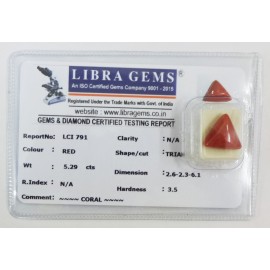 REPORT NO . LCI 132CLARITY . N/ACOLOUR . REDSHAPE / CUT . TRIANGLEWT . 4.34 CTSDIMENSION . 10-5.10-4.6-1.R . INDEX . N/AHARDNESS . 3.5COMMENT . CORAL..