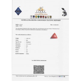 REPORT.NO.LCI 572CLARITY.N/ACOLOUR.RED SHAPE/CUT.TRIANGLE WT.3.25 CTSDIMENSION.1.4-10.1-4.8R.INDEX.N/AHARDNESS.3.5COMMENT.CORAL..