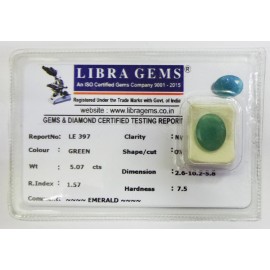 REPORT.NO.LE 397CLARITY.N/ACOLOUR.GREENSHAPE/CUT.OVALWT.5.07 CTSDIMENSION. 2-6.10-2.5-8.R.INDEX.1.57HARDNESS.7.5COMMENT.EMERALD..