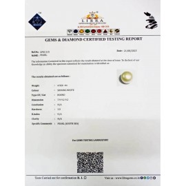 REPORT NO . LP 1080CLARITY . N/ACOLOUR . SHINING WHITESHAPE / CUT . ROUNDWT . 10.11 CTSDIMENSION . 2-3.8-8.2-3.R . INDEX . N/AHARDNESS . 3.0COMMENT . PEARL..