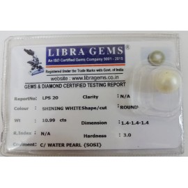 REPORT NO . LPS 20CLARITY . N/ACOLOUR . SHINING WHITESHAPE / CUT . ROUNDWT . 10.99 CTSDIMENSION . 1-4.1-4.1-4.R . INDEX . N/AHARDNESS . 3.0COMMENT . C / WATER PEARL { SOSI }..