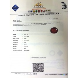 REPORT.NO.LH 572 CLARITY.N/ACOLOUR.COCA COLA SHAPE/CUT.OVAL WT.13.52 CTS DIMENSION.5.4-1.3-8.6R.INDEX.1.92-2.02HARDNESS.6.5-7.5COMMENT.HESSONITE..