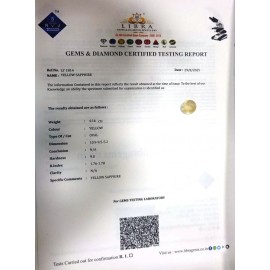REPORT NO . LY 98CLARITY . N/ACOLOUR . YELLOWSHAPE / CUT . OVALWT . 4.65 CTSDIMENSION . 1-1.8-4.5-1.R . INDEX . 1.76-1.78HARDNESS . 9.0COMMENT . YELLOW SAPPHIRE..