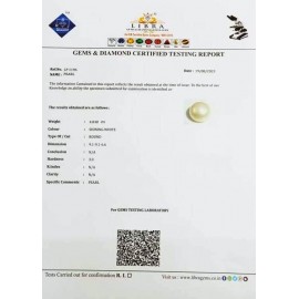 DATE:29-8-2024REF.NO:LPSC 426NAME:PEARLWEIGHT:4.54 CTSCOLOUR:SHINING WHITETYPE OF/CUT:ROUNDDIMENSION:9.4-8.9-7.8CONCLUSION:N/AHARDNESS:3.0R.INDEX:N/ACLARITY:N/ASPECIFIC COMMENTS:PEARL {SOUTH..