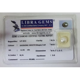 REPORT NO . LP 832CLARITY . N/ACOLOUR . SHINING WHITESHAPE / CUT . ROUNDWT . 4.36 CTSDIMENSION . 8-9.7-1.8-9.R . INDEX . N/AHARDNESS . 3.0COMMENT . PEARL..