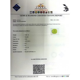 REPORT.NO.-LYA 124CLARITY.-N/ACOLOUR.-YELLOWSHAPE/CUT.-OVALWT.-3.56 CTSDIMENSION.-9-5.7-5.5-7.R.INDEX.-1.76-1.78HARDNESS.-9.0COMMENT.-YELLOW SAPPHIRE { A }..