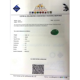 REPORT.NO.-LE 341CLARITY.-N/ACOLOUR.-GREENSHAPE/CUT.-OVALWT.-8.02 CTSDIMENSION.-5.4-2.1-5.3R.INDEX.-1.57HARDNESS.-7.5COMMENT.-EMERALD..