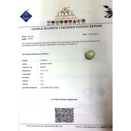 REPORT NO . LPSC 31CLARITY . N/ACOLOUR . SHINING WHITESHAPE / CUT . ROUNDWT . 5.26 CTSDIMENSION . 9-5.7-9.9-5.R . INDEX . N/AHARDNESS . 3.0COMMENT . PEARL { SOUTH SEA }..