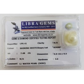 REPORT NO . LPS 41CLARITY . N/ACOLOUR . SHINING WHITEWT . 7.48 CTSDIMENSION . 9-9.10-1.9-9.R . INDEX . N/AHARDNESS . 3.0COMMENT . C / WATER PEARL { SOSI }..