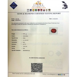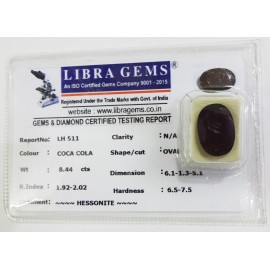 REPORT.NO.LH 511CLARITY.N/A COLOUR.COCA COLASHAPE/CUT.OVAL WT.8.44 CTS DIMENSION. 6.1-1.3-5.1R.INDEX. 1.92-2.02HARDNESS.6.5-7.5COMMENT.HESSONITE..