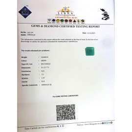REPORT.NO.-LE 727CLARITY.-N/ACOLOUR.-GREENSHAPE/CUT.-RECTANGLEWT.-4.36 CTSDIMENSION.-1-8.10-1.3-7.R.INDEX.-1.57HARDNESS.-7.5COMMENT.-EMERALD..