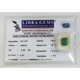 REPORT.NO.LEJ 167CLARITY.N/ACOLOUR.GREENSHAPE/CUT.RECTANGLEWT.3.50 CTSDIMENSION.9.7-6.9-6.5R.INDEX.1.57HARDNESS.7.5COMMENT.EMERALD {J}..
