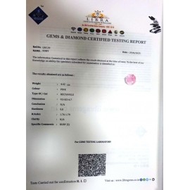DATE:2025REF.NO:LRS 29NAME:RUBYWEIGHT:4.42 CTSCOLOUR:PINKTYPE OF/CUT:RECTANGLEDIMENSION:9-5.8-5.6-7.CONCLUSION:N/AHARDNESS:9.0R.INDEX:1.76-1.78CLARITY:N/ASPECIFIC COMMENTS:RUBY { S }..