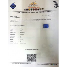 REPORT.NO.-LN 797CLARITY.-N/ACOLOUR.-BLUESHAPE/CUT.-RECTANGLEWT.-7.31 CTSDIMENSION.-10-1.8-6.6-3.R.INDEX.-1.76-1.78HARDNESS.-9.0COMMENT.-BLUE SAPPHIRE..