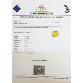 REPORT NO . LY 54CLARITY . N/ACOLOUR . YELLOWSHAPE / CUT . OVALWT . 8.05 CTSDIMENSION . 3-2.9-5.6-2.R . INDEX . 1.76-1.78HARDNESS . 9.0COMMENT . YELLOW SAPPHIRE..
