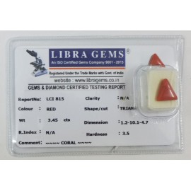 REPORT.NO.-LCI 815CLARITY.-N/ACOLOUR.-REDSHAPE/CUT.-TRIANGLEWT.-3.45 CTSDIMENSION.-1-2.10-1.4-7.R.INDEX.-N/AHARDNESS.35COMMENT.-CORAL..