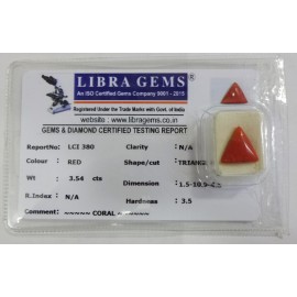 REPORT NO . LCI 380CLARITY . N/ACOLOUR . REDSHAPE / CUT . TRIANGLEWT . 3.54 CTSDIMENSION . 1-5.10-9.4-8.R . INDEX . N/AHARDNESS . 3.5COMMENT . CORAL..