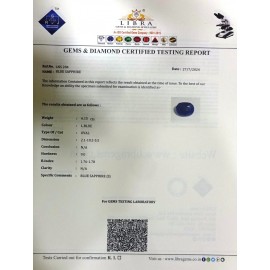 REPORT.NO.LN 829CLARITY.N/ACOLOUR.BLUESHAPE/CUT.OVALWT.5.81 CTSDIMENSION.4.3-2.1-4.5R.INDEX.1.76-1.78HARDNESS.9.0COMMENT.BLUE SAPPHIRE..