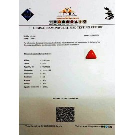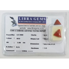 REPORT.NO.-LCI 800CLARITY.-N/ACOLOUR.-REDSHAPE/CUT.-TRIANGLEWT.-3.68 CTSDIMENSION.-10-2.10-3.5-5.R.INDEX.-N/AHARDNESS.35COMMENT.-CORAL..