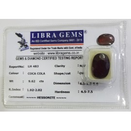 DATE: 15-4-2025REF.NO: LHS 492NAME: HESSONITEWEIGHT: 4.75 CTSCOLOUR: COCA COLATYPE OF/CUT: OVALDIMENSION: 1.7-9.8-4.5/CONCLUSION: N/AHARDNESS: 6.5-7.5R.INDEX: 1.92-2.02CLARITY: N/ASPECIFIC COMMENTS: H..