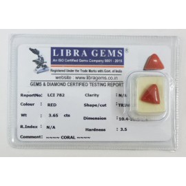REPORT.NO.-LCI 782CLARITY.-N/ACOLOUR.-REDSHAPE/CUT.-TRIANGLEWT.-3.65 CTSDIMENSION.-10-4.10-5.5-6.R.INDEX.-N/AHARDNESS.35COMMENT.-CORAL..