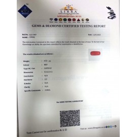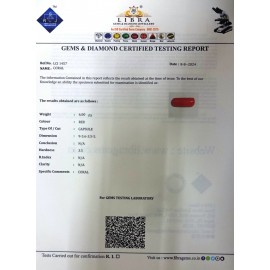 REPORT.NO.LCI 758CLARITY.N/ACOLOUR.REDSHAPE/CUT.CAPSULEWT.5.62 CTSDIMENSION.8.1-6.2-5.3R.INDEX.N/AHARDNESS.3.5COMMENT.CORAL ..