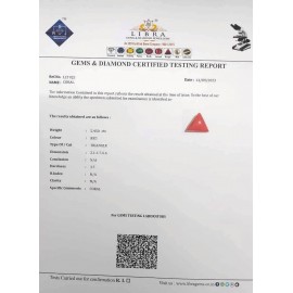 REPORT NO . LCI 268CLARITY . N/ACOLOUR . REDSHAPE / CUT . TRIANGLEWT . 4.69 CTSDIMENSION . 3-6.2-7.4-3.R . INDEX . N/AHARDNESS . 3.5COMMENT . CORAL..