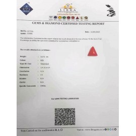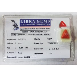 REPORT NO . LCI 119CLARITY . N/ACOLOUR . REDSHAPE / CUT . TRIANGLEWT . 4.27 CTSDIMENSION . 1-4.1-6.5-5.R . INDEX . N/AHARDNESS . 3.5COMMENT . CORAL..