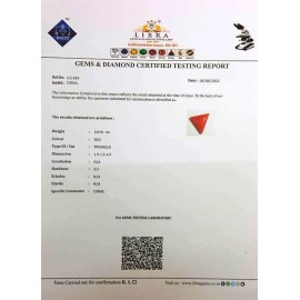 REPORT NO . LCI 143CLARITY . N/ACOLOUR . REDSHAPE / CUT . TRIANGLEWT . 5.18 CTSDIMENSION . 10-8.10-4.6-5.R . INDEX . N/AHARDNESS . 3.5COMMENT . CORAL..