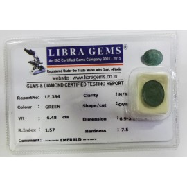 REPORT.NO.LE 384CLARITY.N/ACOLOUR.GREENSHAPE/CUT.OVALWT.6.48 CTSDIMENSION. 6-9.3-1.10-9.R.INDEX.1.57HARDNESS.7.5COMMENT.EMERALD..