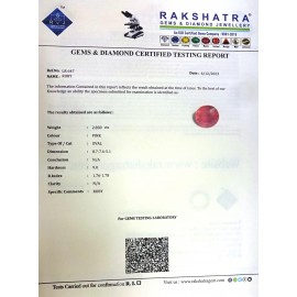REPORT.NO.LR 549CLARITY.N/ACOLOUR.PINK SHAPE/CUT.OVAL WT.14.17 CTS DIMENSION.7.5-4.4-5.4R.INDEX.1.76-1.78HARDNESS.9.0COMMENT.RUBY ..