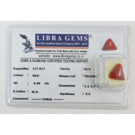 REPORT.NO.-LCI 817CLARITY.-N/ACOLOUR.-REDSHAPE/CUT.-TRIANGLEWT.-4.49 CTSDIMENSION.-1-1.1-7.5-7.R.INDEX.-N/AHARDNESS.35COMMENT.-CORAL..