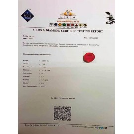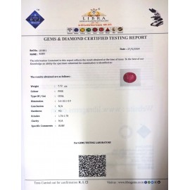 REPORT NO . LR 95CLARITY . N/ACOLOUR . PINKSHAPE / CUT . OVALWT . 3.04 CTSDIMENSION . 9-9.7-3.4-2.R . INDEX . 1.76-1.78HARDNESS . 9.0COMMENT . RUBY..